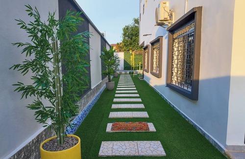 Stay comfortably in Kribi at this 5-bedroom house. Each room features a queen bed, ensuring a phenomenal night's sleep for all guests. With 8 bathrooms equipped with luxurious amenities like a bidet and bathtub, your stay will be superbly comfortable. Enjoy the convenience of ironing, laundry facilities, and WiFi during your stay. It's easy to see why you'll be able to unwind at our place. The Cozy Guest House – Your Luxury Escape in Kribi