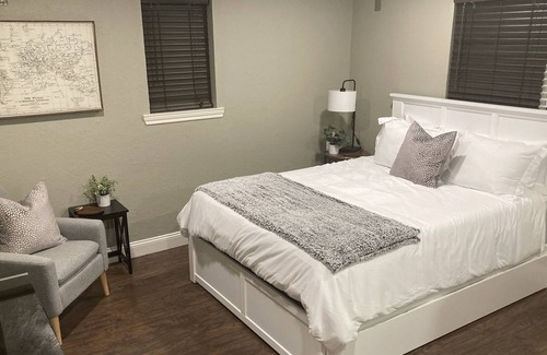 This cozy studio apartment (hotel style room) has everything you need to enjoy your stay. Amenities include a queen bed, 42 inch Roku style TV, heating and air conditioning and many others.