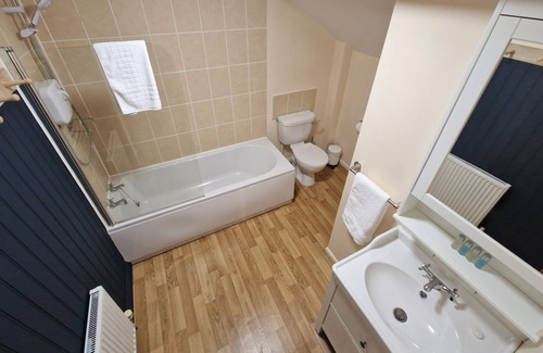 Upstairs there are three bedrooms (one double and 2 single bedrooms) and a family bathroom. The bathroom includes an over bath power shower.