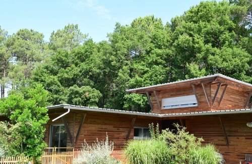 Built in 2009, Built in pines of the Landes, on a raised ground of 2000 m2, this house of Architect in wood, with the contemporary design, integrates perfectly in the environment of which it comes and which it respects (Low Building Consumption).
