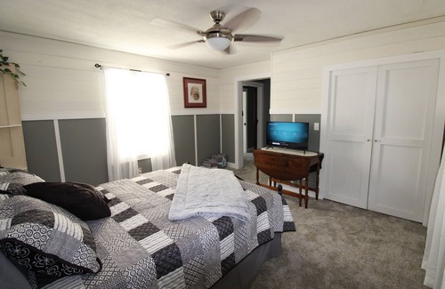Adorable, updated farmhouse with lots of wide open spaces around it. Somewhat secluded with a large firepit (owner supplies the firewood) in the back yard. Sit on the back porch and enjoy the sunset or enjoy the newly remodeled spacious interior of the home. All of the rooms are unique with craftsman-like artistry. Great for just a quick visit to the area or if you are in the area for extended stay. There is a playset in the back yard for the littles and a gas grill for the adults.