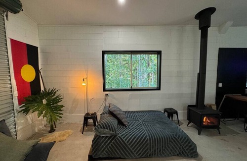 Welcome to the Disco Studio, a stylish, open-plan converted shed set on 12 acres of lush property at the base of the sacred mountain known as "Old Man Dreaming." Set beside the crystal-clear Never Never River, this unique, self-contained hideaway offers the perfect retreat for up to 4 guests.