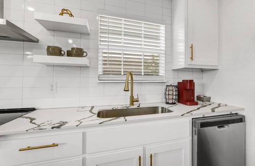 Enjoy a stylish experience at this centrally-located 2nd floor apartment just 3 blocks from the Texas A&M Campus and convenient to all things Bryan and College Station. Sink into the theater chairs and be entertained by the 58" Smart TV or hang with friends around the huge marble island counter. This unit has it all including the comfiest King beds you ever slept in, a custom kitchen, convenient parking, all in the most central location to the BCS area. Hosted by 11-time superhosts.