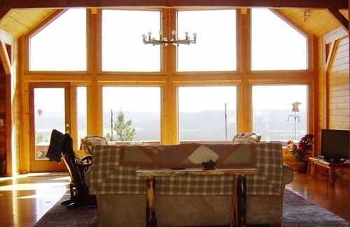 Accommodations - The Eagle’s Nest sleeps four to six people comfortably. One Master bedroom suite with Queen size log bed and private full bathroom with master bath and separate shower. One Guest bedroom with Double size log bed and private full bathroom. A Great Room with Queen size pullout sofa bed and access to your own small bathroom with toilet and shower off of the kitchen. Large open kitchen with granite counter tops and double islands with many cooking supplies. Large dining area with table and chairs for sitting six comfortably. Large deck and relaxing backyard with barbecue. Flat screen TV. Dish Network. Phone. Wireless Internet. One car garage.