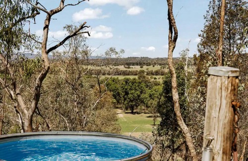 Kirwyn Farm is located 10min from Mudgee CBD and nestled within a reputable food and wine region. The Eagles Nest Cabin is located at 600 meters above sea level, with the most amazing views. Relax and watch the wildlife wander past the cabin whilst you sit on the deck or relax in the plunge pool. Phone service is available up at the cabin for Telstra and Optus however other carriers may be limited.