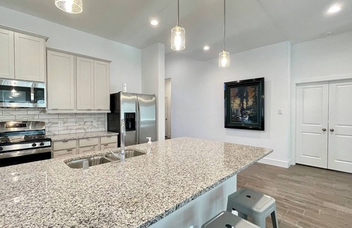 The property close to highway 59 and Old Town Rosenberg, next to Seabourne Creek Nature Park, a beautiful natural oasis, offers a peaceful retreat surrounded by lush greenery and scenic views. The rental property features modern amenities, comfortable furnishings, and a spacious layout perfect for relaxing. Whether you're looking to hike the trails, birdwatch, or simply unwind in nature, this vacation rental is the ideal home base for your getaway. a stylish experience at this central ocation.