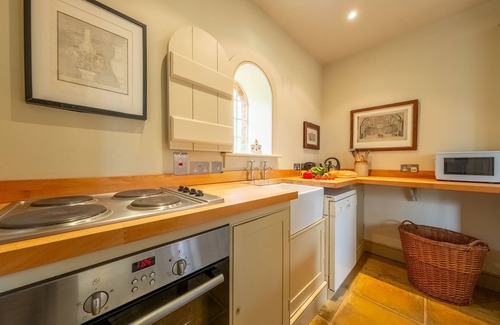 The Engine House in North Elmham offers a cosy sitting room that features ample seating, shelves of eclectic reading material, a small television and an open fire. Nearby, the well-equipped kitchen includes an electric oven, microwave and dishwasher, while also being stocked with a full inventory of tableware and cookware. You'll also find a dining table for four guests, providing a space for enjoying meals together.
