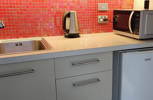 The studio comprises a whole floor with separate bedroom and en-suite, lounge area and kitchenette. Fold-out bed available on request for an additional linen fee.