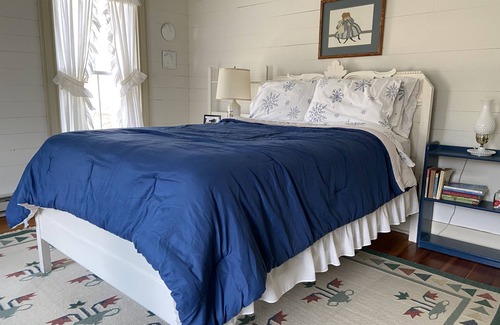 There is an abundance of eating space in the Farm House with it’s eat in kitchen, dining room, and sun porch. The kitchen is complete with a gas stove, dishwasher, and microwave. A washer and dryer are housed in the mudroom. The living room is equipped with a smart TV, television and DVD player are located in the downstairs bedroom. A library of VCR tapes and DVDs are located in the upstairs bedroom, along with books, games, puzzles, and toys. Internet and WiFi access are located in the dining room.