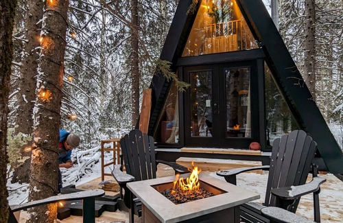 Experience awe-inspiring modern architecture and cozy comfort in the atmospheric setting of the Boreal forest in our off-grid, pet- and family-friendly a-frame cabins.