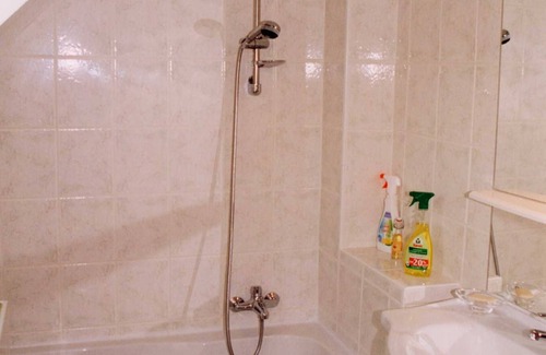 Upstairs 1 bedroom with double bed with clothes rack, fan, bathroom with bath / shower, wc, additional heating, hair dryer.