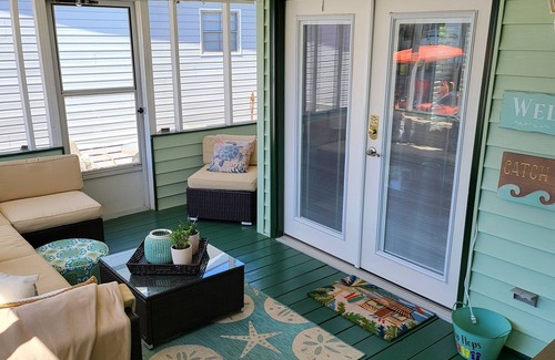 Private screened porch and fenced yard! Inside has lots of natural light and is very spacious! Close to beach with a complementary golf cart. Renovated, brand new appliances and flooring. 2 bedroom and 2 bath coastal cottage.