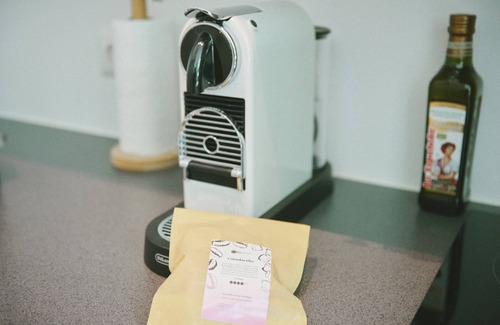 The grand HTH kitchen to the left of the entrance is fully stocked with a stove, full oven, fullsize fridge with a freezer, microwave, toaster, kettle, Nespresso machine with complimentary bio capsules and plenty of storage.