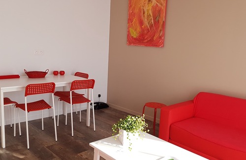 In quiet area, beautiful rental fully renovated modern style, single storey, large windows overlooking the outside. Independent kitchen, living-dining room (sofa bed), bedroom, bathroom. Reversible air conditioning in each room. Access to private terrace equipped (table, chairs, barbecue, deck chairs) with small garden flowers. Parking nearby.