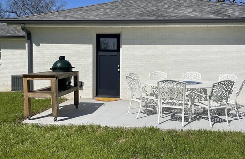 The Fox Den has a king bed in master, and a queen bed in the two guests rooms so we can comfortably accommodate 6 guests. The home is equipped with two full bathrooms, washer and dryer, fully stocked kitchen with new Whirlpool appliances. All brand new mattresses, furnishings, floors, everything in the entire home is brand new!