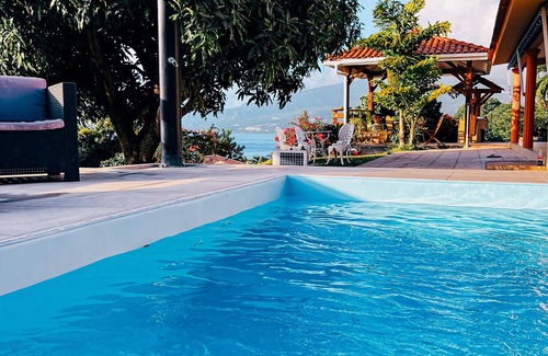 Superb villa with swimming pool. It has 2 bedrooms with en-suite bathrooms on the ground floor, and 1 other upstairs. a large living room and a veranda where you can discover the Pelée mountain, the Pitons du Carbet and admire the wonderful setting sun. The villa can sleep up to 8 people, the rental price is for 6 people an additional 20 euros per person per day will be requested beyond 6 .--------------- -------------------------------------------------- -------------------------------------------------- ---------------------------------