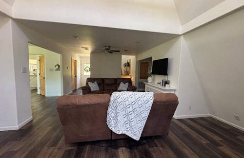 Discover this delightful 3-bedroom gem in Franklin. This charming house features 1 king bed, 1 queen bed, and 2 twin bed, perfect for a serene getaway. Lodge Cabin feel with cedar accents, With 2 bathrooms equipped with showers, guests can relax and unwind in this cool retreat. Whether you're looking to escape the hustle and bustle or simply enjoy a delightful vacation, this cozy home is the perfect choice. We look forward to welcoming you to our place. This home is less than 1/2 a mile to FRANKLIN RANCH, enjoy fishing, water splash pad, hiking trails, baseball and so much more! Perfect stay for baseball families looking to be able to wash, and cook home cooked meals, grill and so much more. Ample patio spaces! Come Stay at your Home away from home!