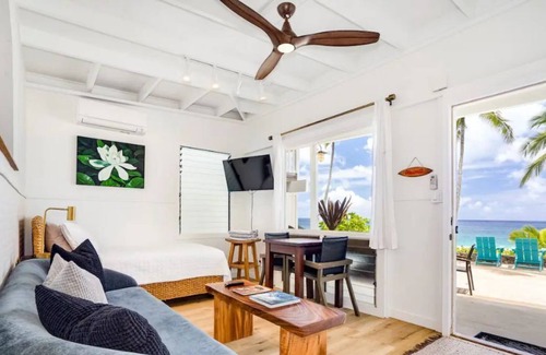 Modern Beachfront Bungalows on Oahu’s iconic North Shore. Guests enjoy romantic sunsets on an acre and a half of palm-fringed beachfront over looking the incredible Ke Iki Beach. All our beachfront bungalows have been fully remodeled in 2020 they all have beautiful ocean and sunset views. We are new to VRBO but the legendary "Ke Iki Beach Bungalows" is operating with Aloha since 1952, look us up online to read our great reviews. Aloha