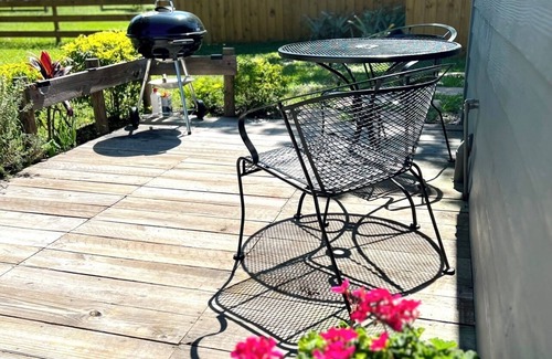 NO carpet floors! Comfortable and Fresh New mattresses, Bathroom and kitchen. Fire pit area, wood deck, charcoal Grill and fenced backyard!