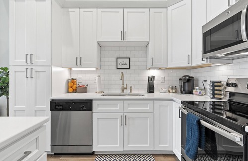Experience Lakeside Charm at The Graduate on Main Street, Racine. Nestled along Lake Michigan, just half a mile from North Beach, indulge in a getaway offering shopping, dining, boating, fishing, and more. This newly built and professionally designed space welcomes solo travelers on business, couples seeking a weekend escape, or those in search of an extended stay. Revel in the comfort of a single bedroom featuring a cozy queen-size bed and smart TV which you can stream from your own accounts. The living room offers a Queen size sofa sleeper. Enjoy a pristine full bath, laundry facilities, and the convenience of keyless entry for a seamless stay. Bring your canine companion (no cat). We also offer The Greyhound Suite B located next to The Graduate if you are in need of another apartment (traveling with family, friends or work colleagues). Structure parking on 3rd St and Lake ($3.50 a day/night) is encouraged or street metered parking (download Passport Parking App) check hours please. We look forward to your stay!
