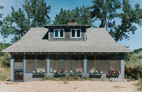 Our Windy Dune built after the turn of the century on the sandy North Shore of Grand Haven, Windy Dune is a family summer dwelling, with pictures, candles, and family collections reminiscent of years-gone-by. A large, screened front porch facing the “big lake” is the setting for reading, talking, or just watching the weather change. 100 feet of sugar sandy Lake Michigan beach is the site of boating, swimming, or just hiking to the pier and watching sailboats, yachts, and ocean-going tankers come and go. Directly across the street, the Kitchel/Lindquist and Harold Hartger Dune Preserves chronicle beachscape, which allows for peaceful hikes through pines, over marshes, and across protected sand dunes. North Shore Marina is a 5 minute walk from Windy Dune as is the north pier.