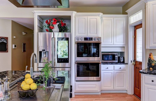 You will be able to see what I mean when you use this space, Chef's dream kitchen is open light bright- with lots of built-in features and wide open space for visiting, the kitchen is the heart of entertainment so we built ours with plenty of space together.