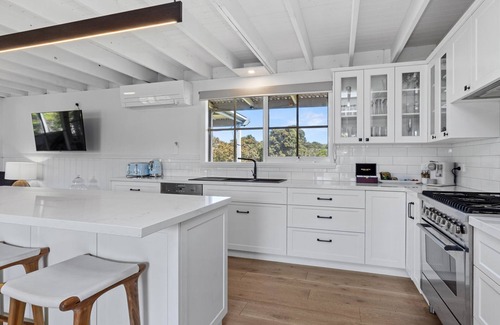 The property is presented over 2 levels. The ground floor consists of a large open plan kitchen area with Miele & Ilve appliances, 2 x coffee machines (nespresso pods), reverse cycle air con, massive 3 metre long blackbutt table with seating for 16 people complete with living area with large wall mounted TV, which leads off to a large deck area with BBQ & Seating