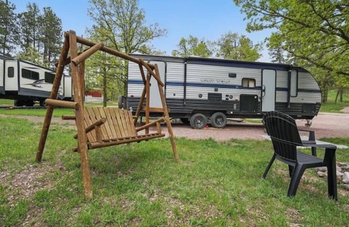 Escape to the charm of the Black Hills with this fully equipped 32-foot camper, surrounded on three sides by the lush Black Hills National Forest. Whether you’re exploring local tourist attractions, hiking the nearby trails, or relaxing by one of the many serene lakes, adventure and tranquility are just steps away.