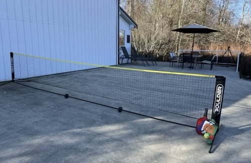 Airplane hangar turned vacation rental in Point Roberts, WA! Next to the runway! Enjoy the activities available as you make memories in this unique and family-friendly rental! No matter the time of year, experience the gorgeous views while walking the many beaches, or the trail systems! Have a great time with the fooseball, private pickleball court or basketball hoop ... or cozy in for family games that are provided or watch a movie on the large television screen!