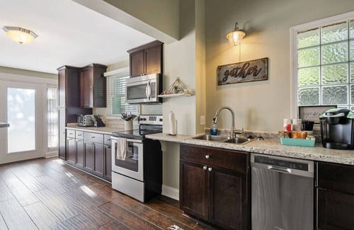 Welcome! Our recently remodeled Haymount Hideaway is so comfy and relaxing, you’ll feel right at home. This detached guest house has an open floor plan, stylish furnishings and a secluded loft bedroom (please be aware, LOFT BEDROOM HAS A LOW CEILING). The spacious Hideaway is ideally located just a block away from the historic Haymount neighborhood, one mile from downtown Fayetteville and a quick 8 miles to Fort Bragg.