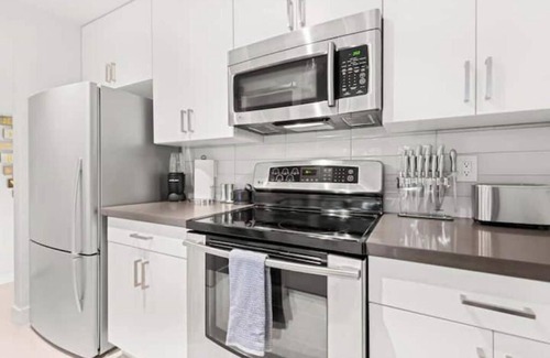 -Modern open kitchen, stainless steel appliances, and high end cookware/pots/pans. Reverse osmosis UV drinking water system. Brita water filter.