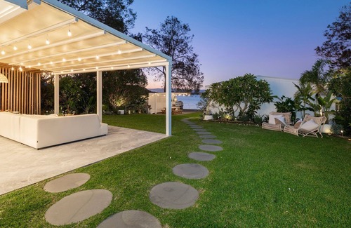 Welcome to The Hideaway at Bonnells—an ultra-stylish, waterfront escape where relaxed luxury meets whimsical charm. Positioned on the ground floor of the main cottage, beside a lush waterfront reserve and just steps from the shoreline, this light-filled retreat invites you to unwind beneath a canopy laced with solar fairy lights. Think barefoot afternoons on oversized outdoor lounges, dreamy water views, and a private jetty that practically begs you to dip your toes in.