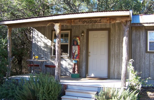 The Hideout is a quaint, cozy tiny house/cabin at Round Mountain Ranch is located in Leander. The Hideout is a quaint, cozy tiny house/cabin at Round Mountain Ranch provides accommodation, featuring Parking, Security/Safety, Bedding/Linens, among other amenities. This Cabin features Parking, Security/Safety, Bedding/Linens, to make your stay a comfortable one.