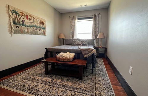 Uniquely styled hotel wing inside the fully remodeled Historic Hotel Hartington downtown! Guests will have a 3 bedrooms along with 2 bathrooms in their Hollywood Suite wing. There is 1 additional bedroom in the wing to rent upon inquiry if needed. The extra bedroom will not be rented to any other guests outside of your party/reservation and your wing is locked for your security/privacy. You will have a large living room area with big screen TV with Hulu Live and voice activated Alexa. There is a Keurig machine with coffee pods, microwave, and mini fridge. We ask you don't take extra amenities with you after check out. We try to give excessive amenities to our guests in hopes they respect the space.