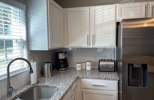 Welcome to my NEWLY built home in Palm Coast, Florida. 4 spacious bedrooms, 2 beautiful bathrooms. Fully equipped kitchen! Huge open and comfy Living Room with a large 65” TV and a Dining area fit for a family gathering! A 50” TV in the main bedroom and a 55” TV in one of the bedrooms. LAST but not LEAST, a brand new PORCH with an outdoor dining area and FIRE PIT! Make sure to check out all of the photos so YOU can get a taste of what’s waiting for you in Palm Coast!