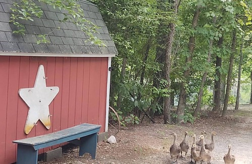 Nestled in farm country, yet 15 minutes north to historic Fredericksburg or south to Kings Dominion, The Horseshoe Pond Cabin boasts 2-bedrooms (2 Queen beds, complete with linens, will sleep four), full kitchen, 2 baths, 2 TVs (DirectTV w/sports package), Starlink internet, inside W/D, decks, patio w/ bar-b-que and woodburning fire-pit (free wood supplied). Close to sightseeing, famous battlefields, or why not stay "home," grab a canoe/paddleboat, fish, play horseshoes, cards, soccer, or just sit back and relax and enjoy listening to the happy sounds of your children playing in the tree house. For those visitors without children, relax in the evening under the stars around the firepit toasting s'mores, and listening to the hushed sounds of the fountain, before enjoying a good night's sleep!