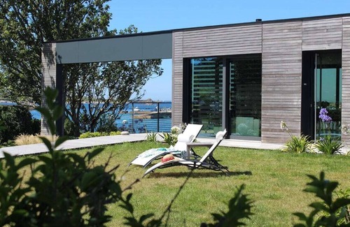 This architect house is located at the bottom of the port of Argenton Landunvez she overlooks. It benefits, by its large picture windows, of an exceptional view on the port and the movements of the tide. The beaches are nearby, the Rochard beach is 100 meters walk, a safe path for children. Other white sand beaches are easily accessible and to choose according to the orientation of the wind. The beach of Penfoul (famous surf spot) is 1500 m.