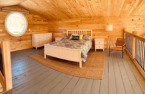 Just completed open concept annex guest suite studio with queen open loft bedroom. Floor to ceiling glass waterveiws boosting water access to private beach area.