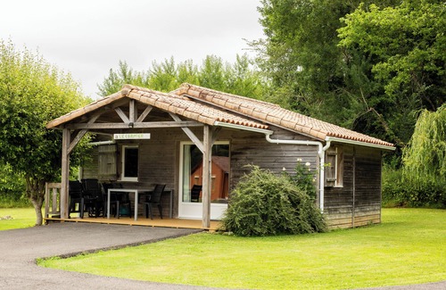 Chalet 35 m2 air-conditioned with covered terrace, garden furniture, parasol, relax and deckchair, barbecue.