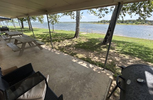 This large 640 Sqft Family Studio has double parking next to the entrance, It has rear door which opens to the private covered patio, picnic table and lake view with full access! The unit includes 2 full beds, kitchen with refrigerator, Microwave, dining table, full bathroom with shower, air conditioning. Dishes, utensils, towels, linens and pans. Your own half barrel BBQ using wood or charcoal. On site 24 hour boat ramp. No charge for more people - just vehicles over 2 + a boat or trailer. This cabin is on the west end next to the boat ramp. Sunset View. Roll away beds available for a fee, or bring air mattresses no charge (4 night+ discount 5%)