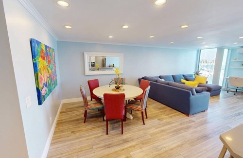 Welcome to your perfect coastal retreat! This beautifully remodeled 2-bedroom, 2-bath condo includes a fold-out couch for guests and is thoughtfully designed for comfort and style. The open-concept layout is filled with natural light and features breathtaking views of the Coronado Yacht Club and Glorietta Bay.