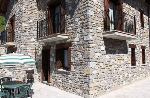 Apartments located in the town of Sahún near Casa Chuanón, these apartments are of recent construction. It is a completely new house composed of two completely equal independent duplex apartments. Both are composed of four rooms (two with double bed and two single beds), a toilet, two bathrooms with shower and kitchen dining room. In addition to having a large terrace where you can contemplate idyllic views of the Aragonese Pyrenees.