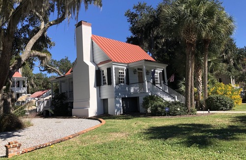 Beautifully sited in the heart of Beaufort's historic district "Old Point" which has been the backdrop for many movies -including "The Big Chill"-, and which is known for its charming streets, lovely live oaks draped with Spanish moss and picturesque homes, this charming 1,000+/- sq. ft., one-bedroom sun-filled cottage is diagonally across from the scenic 'Reflection Pond' and is on the path of the carriage tours. Front and side porches let you enjoy balmy breezes and are the perfect setting for a quiet conversation or reading a book. It also has a dedicated terrace on King St with a istro table and grill so one can enjoy dining 'al fresco'. Just a few blocks from the inter-coastal waterway, restaurants, shopping, USCB (home of the Beaufort Film Festival) and the much filmed Pinckney Park, it's also an easy drive to Hunting Island's stunning beaches, an hour from Savannah and 90 minutes to Charleston. (Note: maximum 2 guests allowed)