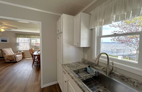 The Lilly pad is a small, 1,000 Sq Ft family friendly cottage located on the east shore of gorgeous sandy bottom- 4400-acre Brevort Lake. Upon entering the cottage you are welcomed by a freshly renovated, light and airy atmosphere. Beginning from the living room and following through to the western side of the home you'll find yourself in a fully equipped kitchen and dining area overlooking Brevort Lake. You will be captivated by the gorgeous lake views 'round the clock. Through the Eastern side of the home you'll find the primary bedroom & attached 1.5 bath on one side of the hall- adjacent from the primary is bedroom #2 which boasts a full size bed and a set of bunk beds. The living room offers a full-size pull-out couch, and a large full bath equipped with a handicap-accessible shower, and washer/dryer. Relax outside around a bon fire overlooking the glistening lake and trailing loons.