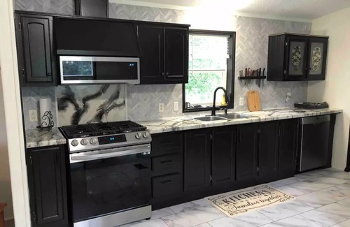 The dock is in, the sand is raked, the kayaks and paddle boat are out. We are ready for SUMMER! The firepits are stocked with wood and those bonfire evenings are upon us! Completely updated 3 bedroom space with 2 full bathrooms. A cooks kitchen with everything you need to whip up gourmet meals during your stay. The hill gently slopes down to the lake, with a sugar sand area to swim, paddle boat, and two kayaks avail End of May-Sep. Sit at one of 2 firepits and enjoy the lake. We have an elegant master suite with a king bed, fireplace, tv, and a deep soaking tub. Washer and dryer on site, private dock space avail May-Oct and a full private acre to enjoy.