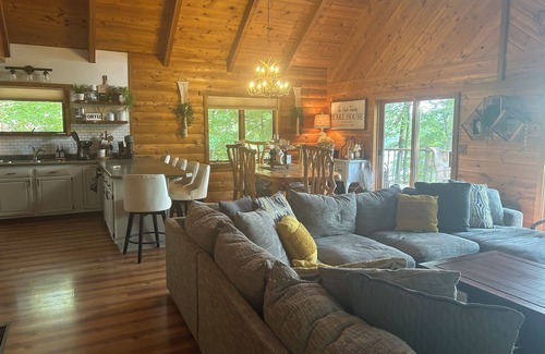 Enjoy the beautiful sunrise in the mornings on the deck or private dock. During the day you can enjoy the paddle boat, fishing off the dock, outdoor games, or just relax. This Lake House is fully equipped with everything you may need. Large deck and below patio, pellet grill, kitchen utensils, towels, linens and much more.