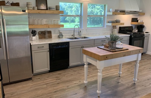 This cozy farmhouse sits on 2 acres. It is private, with plenty on parking (even for a boat)! There are multiple wedding venues within minutes (this house is adjacent to Arrowhead Hill). Lake Conroe, wineries, Margaritaville, P-6 Farms, the Renaissance Festival, shopping, restaurants, skeet shooting, horseback riding, and more are also in the vicinity. This is a great space for two families to share, a bridal party, being close in order to attend a wedding, or those that just don’t want to stay in a hotel. www.thelittlewhitefarmhouse.com