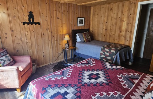Pool & Hot Tub: Hours are 9:00 AM - 9:00 PM, except for Mondays. The pool will close at 7:00 PM for cleaning. Our pool and hot tubs are open year-round. Hot tubs may operate on a rotating schedule, with one occasionally closed for maintenance and cleaning. The pool and hot tubs are shared with other guests on the property. Like other hot springs in the area, we treat our geothermal-fed pool and hot tubs to maintain cleanliness and ensure a safe, enjoyable experience for all guests. The pool and hot tubs may be covered to preserve the temperature. Guests will be responsible for uncovering and recovering the pool.