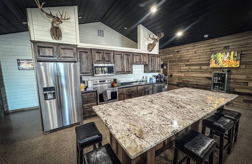 The Lodge was newly constructed in 2024 and offers 4 bedrooms, including 2 rooms with a queen bed and 2 rooms with 2 twin beds each. Each of the bedrooms has its own full bathroom complete with shower, and each bedroom has large windows offering beautiful views of the woods and lake. One bathroom is designed to be handicap accessible. The charming property features a full kitchen with full-size fridge/freezer, dishwasher, stove/oven, microwave, coffee maker, etc. There is a large island with seating for 6. Other amenities include heat, AC, WiFi, smart TV, living room seating for 8+, and a washing machine/dryer. There is a large outdoor patio area with fire pit and Adirondack style chairs for 8, and a grill. Escape to this clean and comfortable Northwoods retreat and experience all this new property has to offer.