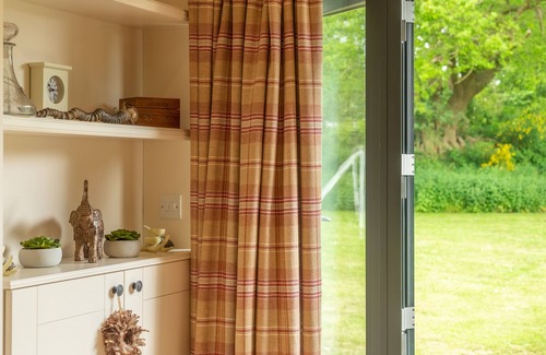 Set privately within the grounds of the owner's house, The Lodge in Wherstead provides all ground floor accommodation with a stunning decked area over looking the gardens. The kitchen has been equipped with a combination microwave and hob, and fridge with icebox so it's possible to cook a simple evening meal or enjoy a cooked breakfast. However, with so many delightful restaurants and pubs to enjoy locally, you might find yourself dining out each evening, you are on holiday after-all! The safari themed open-plan sitting and dining room has comfy seating, wall-mounted Freeview television with Netflix and a dining area with seating for up to two guests, and further seats can be found in the kitchen. The light and airy bedroom with wall-to-wall windows features a luxurious 6' super-king size bed which can be configured as twin 3' single beds on request - ideal for two friends holidaying together or a mother-daughter duo. The Lodge boasts a contemporary shower room with large walk-in shower.